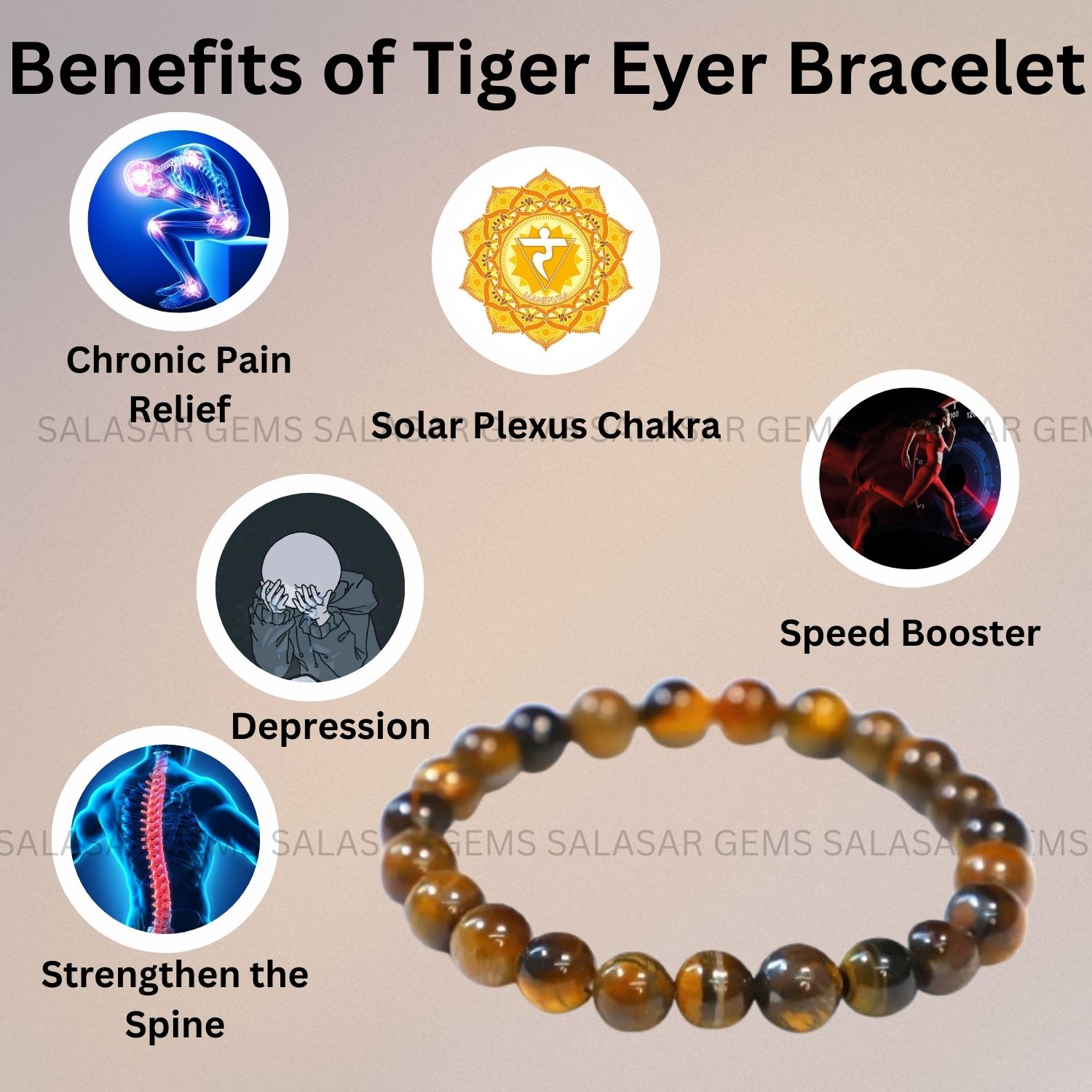 Be the first to review “SALASAR® Tiger Eye Stone Bracelet | 8mm Natural Beads | Confidence & Protection”